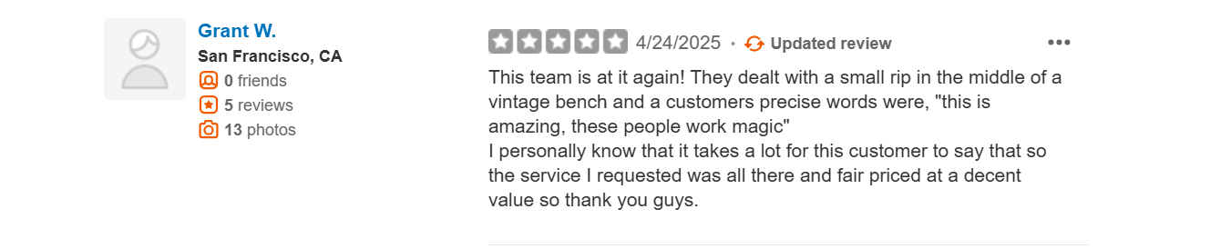 Don’t want to part ways with your old favorite chair or couch? We have several options to help you revamp, repair, upholster, restore your furniture, and give it a fresh look. With our help, your well-loved furniture will look and feel as good as new.